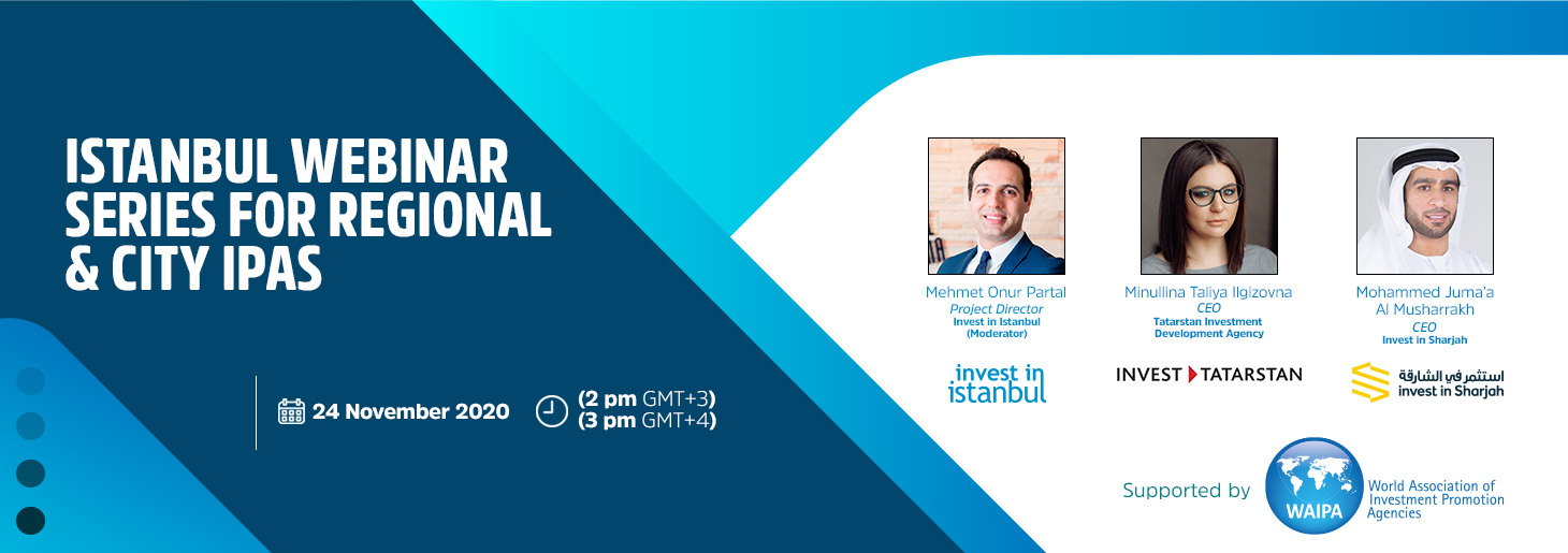 Under the moderation of Mr. M. Onur Partal, Project Director, Invest in Istanbul, Ms. Minullina Taliya Ilgizovna, CEO, Tatarstan Investment Development Agency and Mr. Mohammed Juma’a Al Musharrakh, CEO, Invest in Sharjah will discuss on 24 November at 2-3pm (GMT+3) these issues and how the pandemic influenced their strategies and daily work.