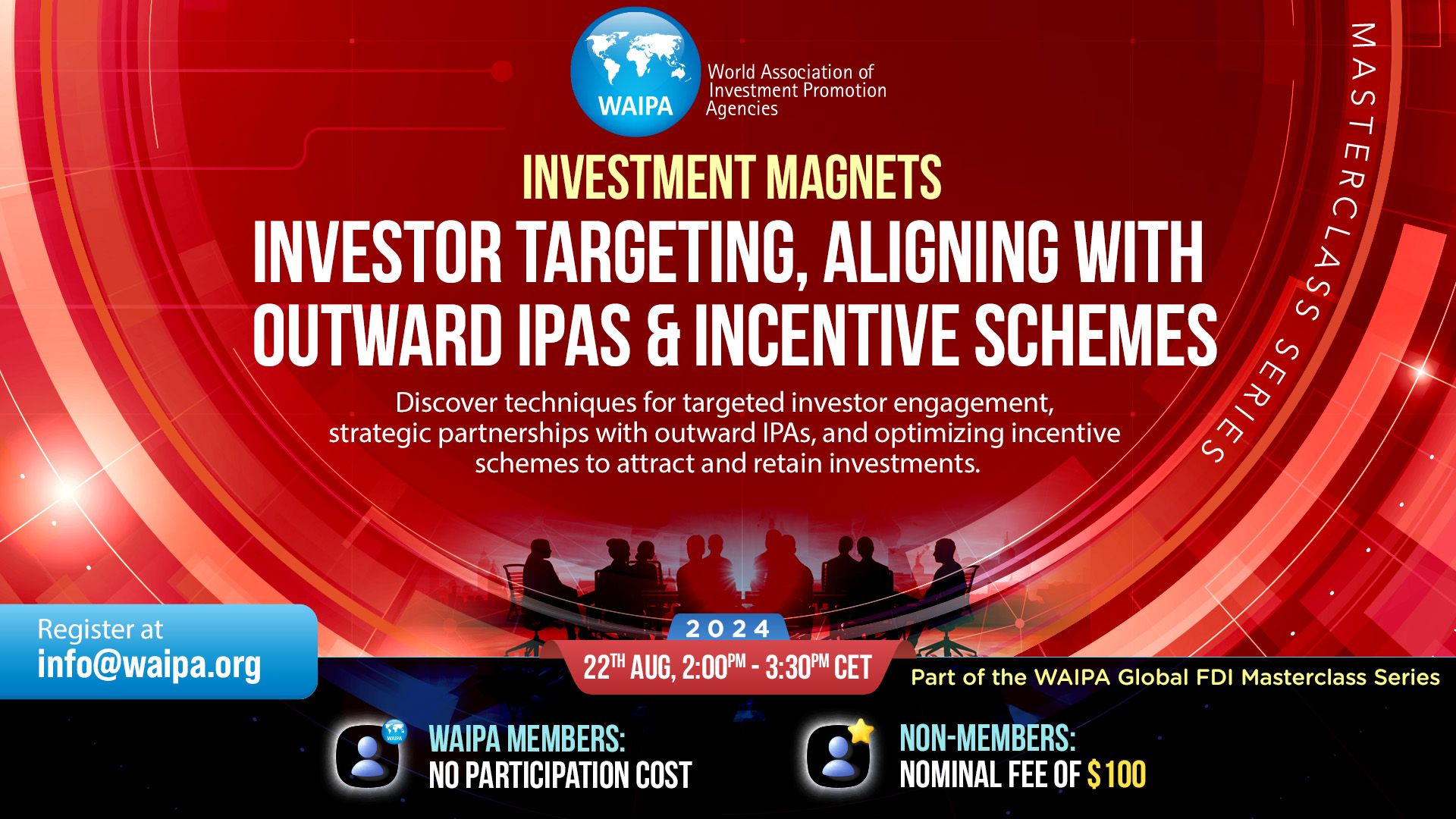 The 5th session in WAIPA’s Global FDI Masterclass Series: “Investment Magnets: Investor Targeting, Aligning with Outward IPAs & Incentive Schemes.” This masterclass is set to explore key strategies for aligning investor interests with targeted incentives and cross-border collaboration.